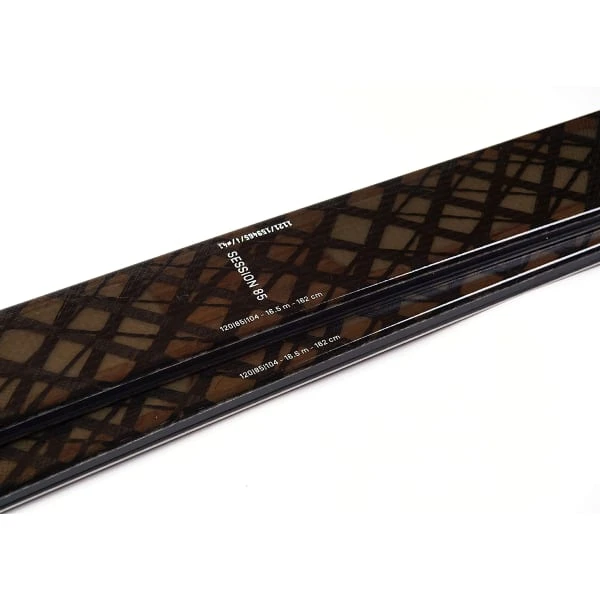 - Carbon 5-assige technologie: carbonfilamenten die zich om de houten kern en het glasweefsel (boven/onder) wikkelen voor meer reactievermogen en grip op harde sneeuw of steile hellingen, plus een zeer hoge torsieblokkering.